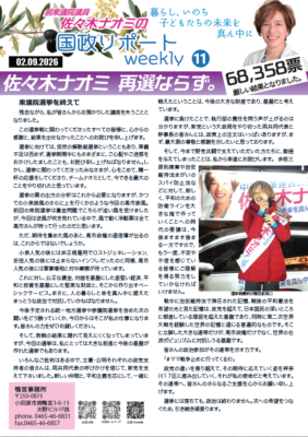 2026年2月9日 佐々木ナオミ国政リポート【WEEKLY(11)】を発行しました。
