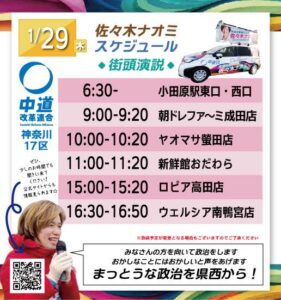 衆院選3日目の1月29日(木)は小田原を回ります!New!!